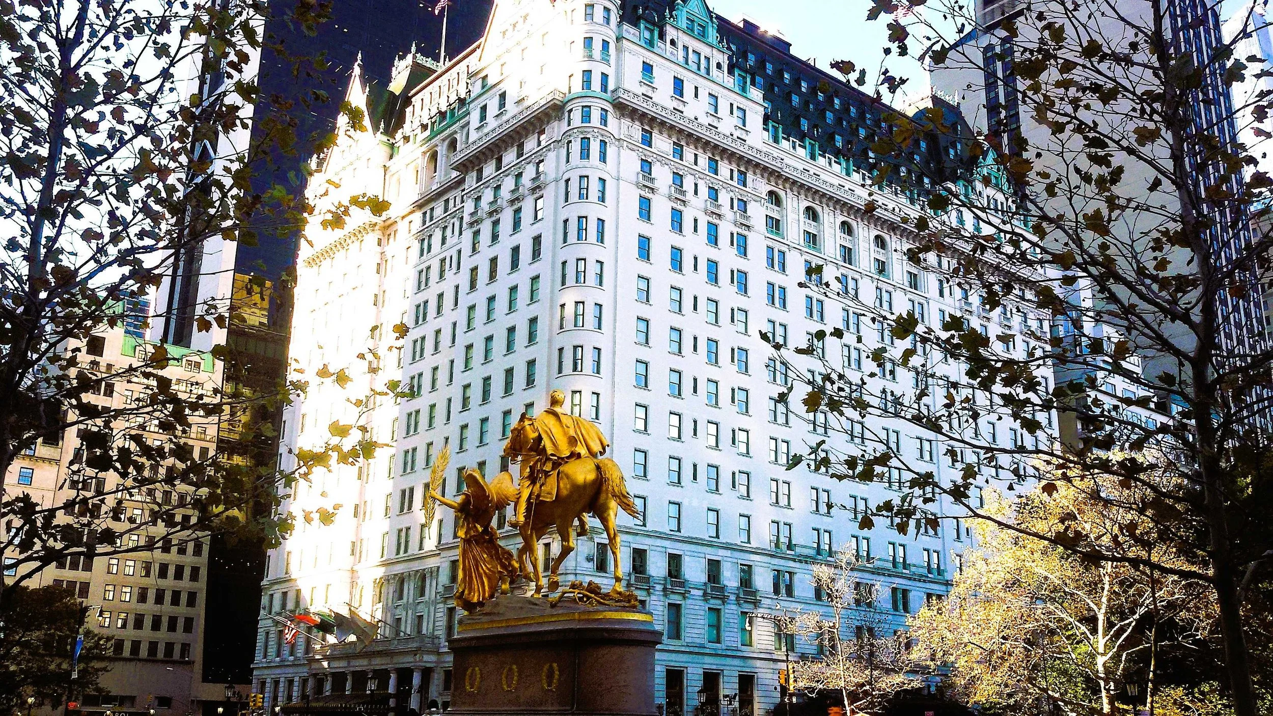 Grand Army Plaza on Fifth Avenue, New York, with the Plaza Hotel and its gilded statue. Photograph by Barbara Athanassiadis