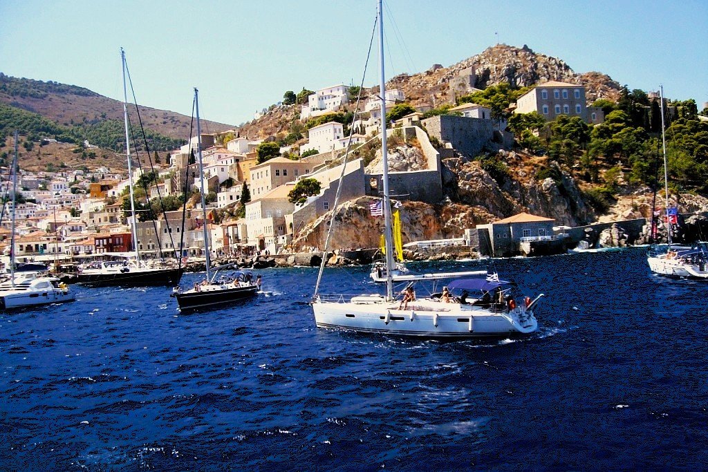 Sailing into the serene embrace of Hydra’s harbour. Photograph by Barbara Athanassiadis