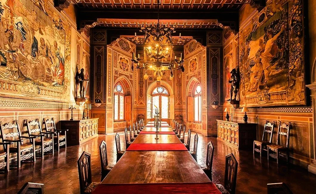 The time-honoured dining room at Barone Ricasoli’s Castello di Brolio, Chianti, Tuscany