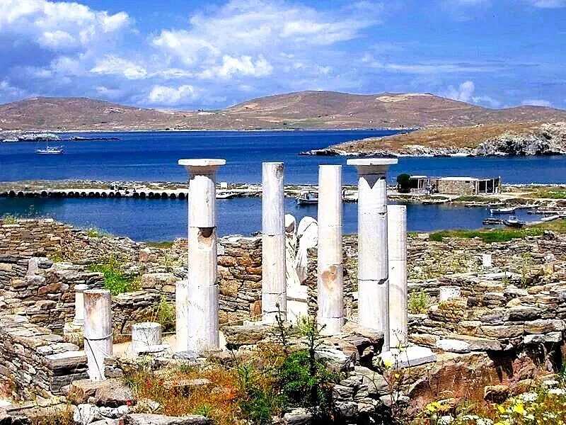 But from where does the myth derive? First of all, the holiness of Delos is neither mysterious nor is it lost in the passage of time. It was the Ionians (1100BC) who arrived in the Cyclades from eastern Attica, and they spread throughout the Eastern Aegean, founding colonies (Samos, Chios), before venturing further out to Asia Minor, which was named Ionia. They did this over time, by building the right ships, and from island to island they observed steady points in the distant horizon, but only in the light of day. They soon realised that at this central point of the Cyclades – Delos – the afternoon sun was brightest and more intensive. It was in this way that they created the anthropomorphic divinity of Apollo making him born on this island with a myth, the charm of which seduced Greeks.