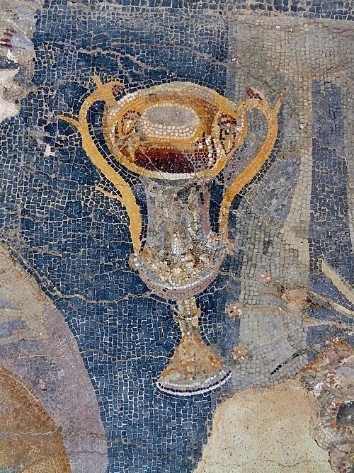 Detail of a Hellenistic glass vessel, from the mosaic Dionysos Riding a Tiger, Delos, c. 120–80 BC.